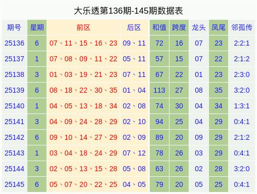 后差别析:最近10期后区号码分别开出09+11、05+11、07+11、01+04、02+08、02+10、02+09、07+12、05+08、04+05,其中”小大“号后区出号率较高,上期开出“小小”数后区04、05,本期瞻望“小小”数后区开出,后区参考01,05。